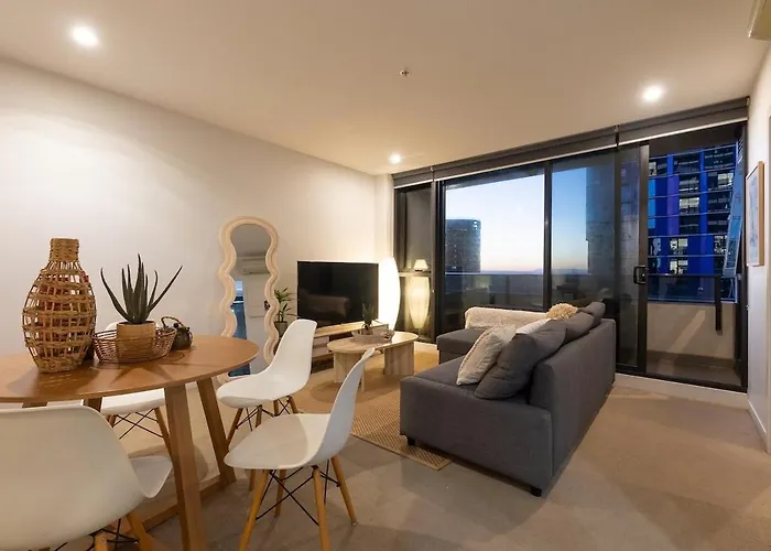 The giant high - up Melbourne Star Observation Wheel is 2.4 km away, while Melbourne Central is a mere 5 minutes' walk from the apartment.